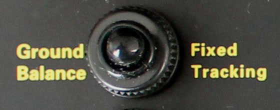 地平衡阀值旋钮:用于调节地平铺,实际探测过程中,请将GROUND BALANCE开关拔到TRACKING位置,配合复位开关,对探测器进行地平衡调节,以排除地地对探测器的干扰。